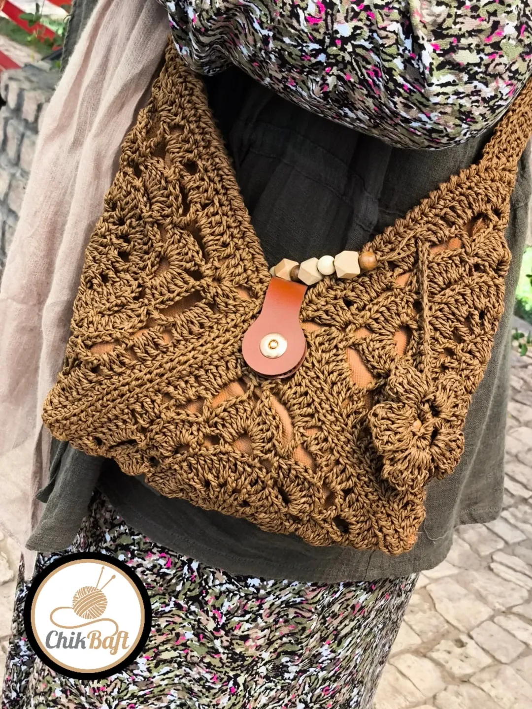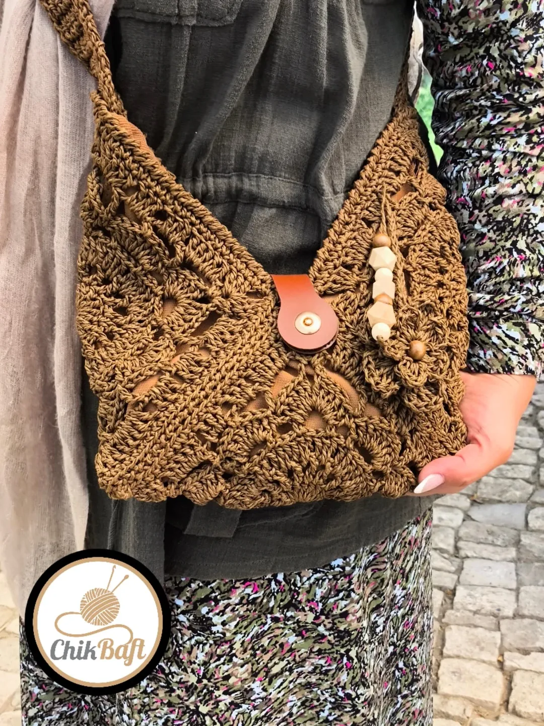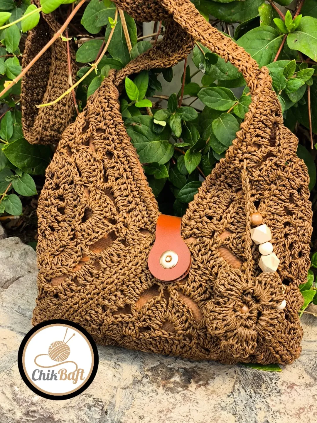کیف رافیا دست بافت، نخ رافیا× آستر دوزی شده، قفل مگنتی